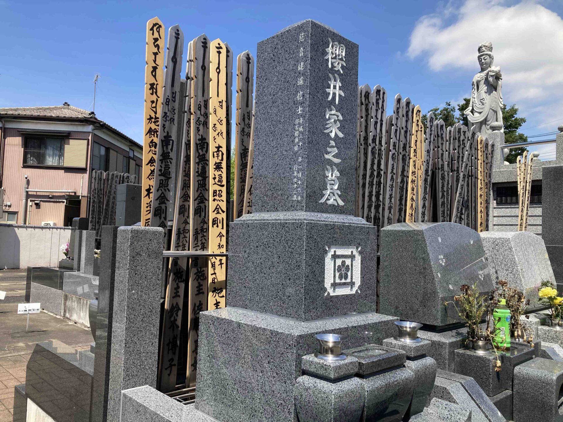 埼玉県三郷市の真言宗寺院、谷口不動尊「成就院」にて櫻井家の墓石工事を行わせていただきました。